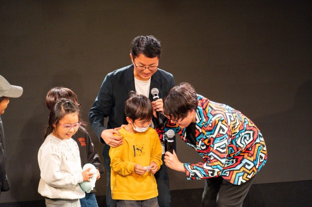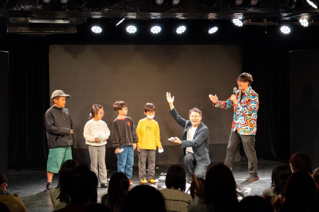 続く即興コント「ペーパーズ」では、観客のメモに書かれた言葉を即興で演技に取り入れ、その場で物語を展開。子どもたち4名が参加した学校がテーマのコントでは「学校をみんなで直す」という結末に至り、「あなたに会えてよかった」という子どもの言葉が会場を温かく包みました。