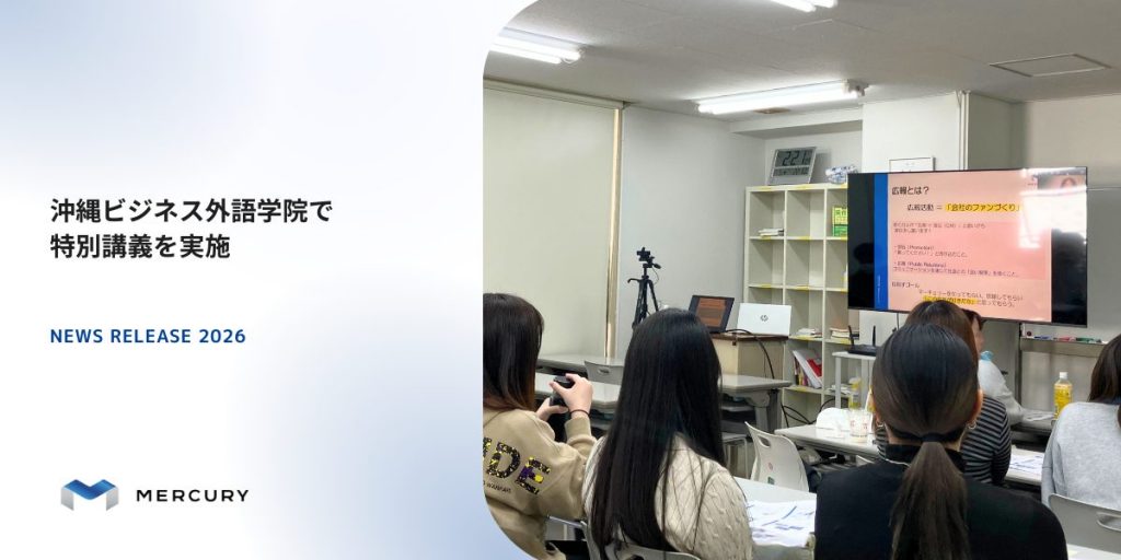 多様な人材の登用・育成を通して関わる人を豊かにする人材サービス会社、株式会社マーキュリー(本社:東京都新宿区西新宿1-26-2 新宿野村ビル23階、取締役社長:秋間 剛、以下「マーキュリー」)は、2026年2月5日(木)、専門学校沖縄ビジネス外語学院にて特別講義を実施しました。